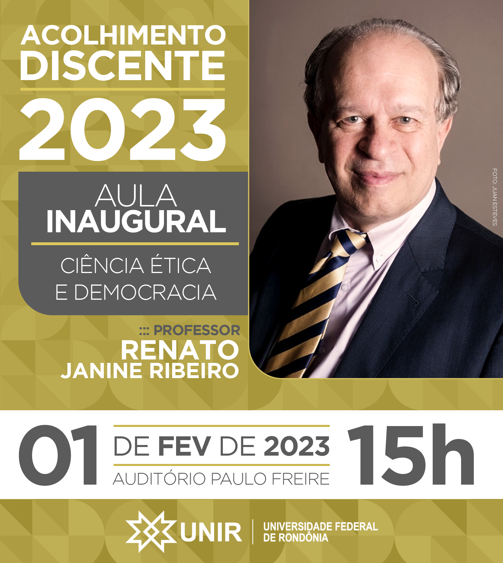 A Universidade Federal de Rondônia (UNIR) iniciará o próximo semestre letivo recebendo o atual presidente da Sociedade Brasileira para o Progresso da Ciência (SBPC) e professor pesquisador da Universidade de São Paulo (USP), Renato Janine Ribeiro, que irá ministrar a aula inauguralno próximo dia 1º de fevereiro. Com o tema “Ciência, ética e democracia”, o evento é aberto ao público em geral e será realizado no Auditório Paulo Freire, no Campus Unir de Porto Velho, às 15h, com terá transmissão pelo canal da UNIR no Youtube (acesse aqui).