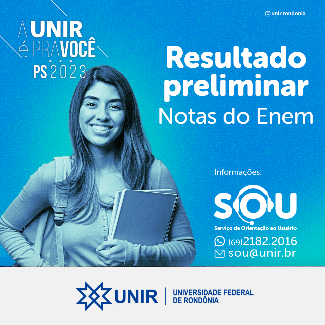 A Universidade Federal de Rondônia (UNIR) publicou nesta sexta-feira, dia 14 de abril, o resultado preliminar do Processo Seletivo (PS UNIR 2023)para ingresso de novos alunos nos cursos de graduação ofertados pela instituição. O resultado refere-se às inscrições realizadas com as notas do Enem e lista os candidatos aprovados e classificados na disputa para as 2.650 disponíveis em 60 cursos distintos nos oito campi da UNIR.A divulgação do resultado final está prevista para o dia 18 de abril de acordo com o cronograma do PS UNIR 2023.