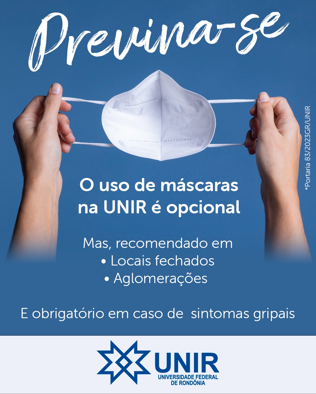 A Portaria 83 em vigência prevê que o uso de máscaras em todas as unidades da Universidade é facultativo, mas recomenda que a proteção seja mantida em ambientes fechados e em locais onde haja aglomeração de pessoas. Além disso, a mesma portaria prevê a obrigatoriedade do uso de máscaras por todas as pessoas que apresentem sintomas gripais, independente do espaço da UNIR em que estejam. Um dos deveres estabelecidos pela Portaria 83 é para que os servidores que apresentarem sintomas gripais, ou que estiverem sob suspeita de contaminação por Covid-19, informem as suas chefias imediatas e sigam estritamente as recomendações médicas referentes aos seus casos.