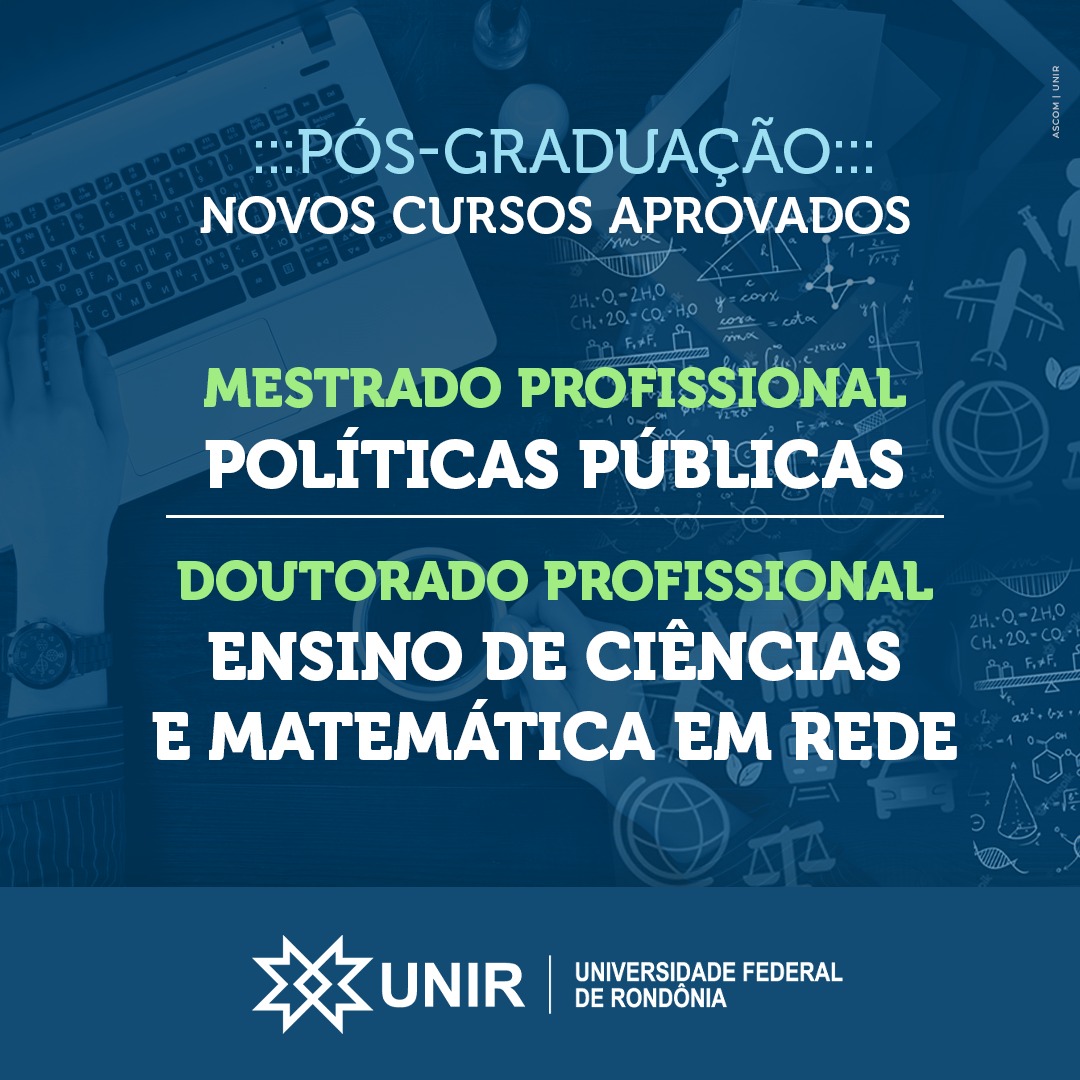 A Universidade Federal de Rondônia (UNIR) teve mais dois cursos de pós-graduação aprovados pela Coordenação de Aperfeiçoamento de Pessoal de Nível Superior (Capes/MEC): o Mestrado Profissional em Políticas Públicas e o Doutorado Profissional em Ensino de Ciências e Matemática, conforme resultado divulgado na segunda-feira, dia 28 (acesse aqui). A intenção é iniciar as primeiras turmas em 2024.