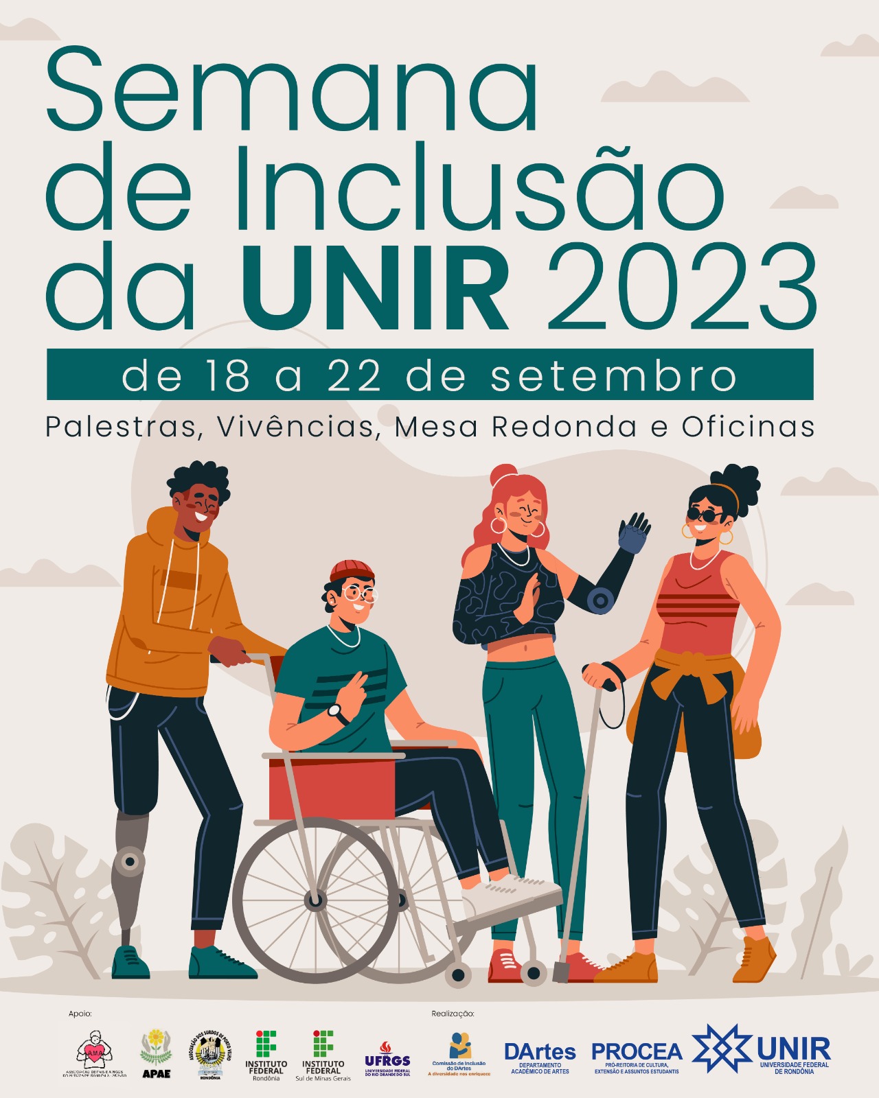 A Universidade Federal de Rondônia (UNIR) realiza na próxima semana, entre os dias 18 e 22 de setembro, a Semana de Inclusão da UNIR, com uma série de atividades e em parceria com outras instituições. A programação será toda desenvolvida no Campus de Porto Velho, com vivências envolvendo a comunidade acadêmica, e também com atividades transmitidas pelo Canal da UNIR no YouTube. De acordo com o professor Luis Cláudio Seixas, do curso de Música, organizador da Semana de Inclusão da UNIR, o objetivo é não apenas conscientizar sobre a necessidade de inclusão na universidade, mas oportunizar formas de compreender e vivenciar as particularidades de cada grupo nos processos de inclusão.