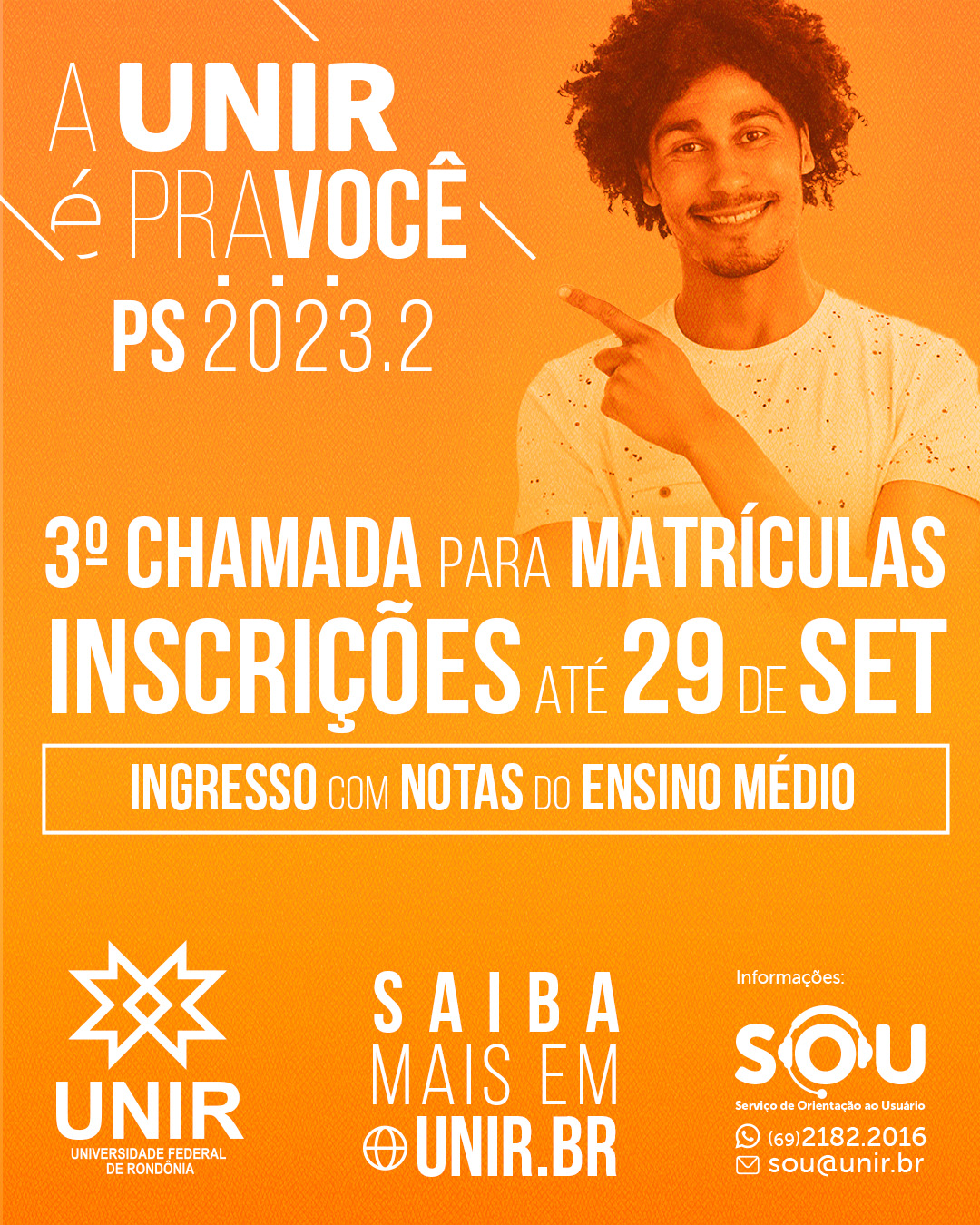 As informações referentes ao PS UNIR 2023 e todos os documentos e etapas do processo seletivo podem ser acessados aqui, inclusive o cronograma com as datas das próximas etapas.