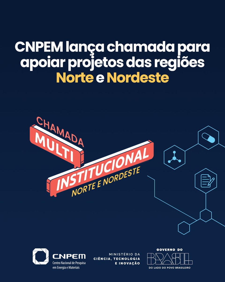 Estão abertas as inscrições para a Chamada Multi-Institucional 2026 do Centro Nacional de Pesquisa em Energia e Materiais (CNPEM), iniciativa voltada ao apoio de projetos de pesquisa desenvolvidos por instituições das regiões Norte e Nordeste do país. A chamada é promovida com apoio do Ministério da Ciência, Tecnologia e Inovação (MCTI) e busca selecionar propostas que contribuam para o desenvolvimento científico, tecnológico e social dessas regiões.