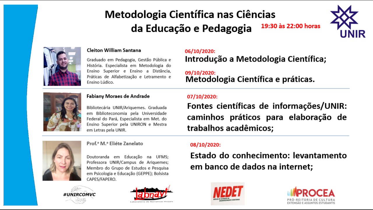 A organização do Curso de Extensão é responsabilidade do Laboratório de Narrativas Audiovisuais (LABNAVI) e do Núcleo de Extensão de Desenvolvimento Territorial (NEDET), ambos do Departamento de Ciências da Educação (DECED) da Fundação Universidade Federal de Rondônia.