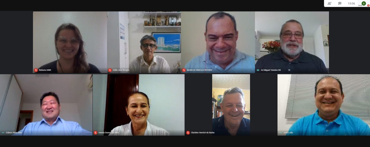 Por meio de um acordo de cooperação com o Instituto Soka - Centro de Pesquisas e Estudos Ambientais do Amazonas (Cepeam), a Universidade Federal de Rondônia dá mais um decisivo passo na internacionalização de suas atividade de pesquisa e extensão. Uma reunião telepresencial realizada nesta sexta-feira (16) oportunizou ao reitor Ari Ott ultimar a concepção dos itens do acordo, juntamente com o presidente do Cepeam, Edson Akira Sato. Também participaram da reunião o professore Célio Borges, interlocutor que instou ao acordo, Ivanda Soares da Silva, chefe de gabinete da Reitoria, o professor Clarides de Barba, a secretária da reitoria da UNIR, Maira Ciorlin e o assessor do Instituto Soka, Jean Leão.